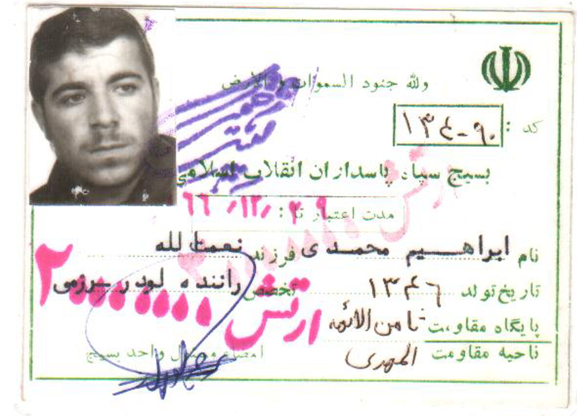 خدمت دوست گرامیم و بهتر از جانم عبدالله سلام عرض می نمایم و امیدوارم که حالتان خوب باشد و هیچ ناراحتی نداشته باشید و اگر از احوالات اینجانب دوست حقیرت ابراهیم محمّدی خواسته باشی حالم خوب است و هیچ ناراحتی در بین نیست عبدالله جان بنده الآن که نامه می نویسم ساعت 5/35 روز یکشنبه 64/10/8 است و در اطاقمان پیش بچه ها نشسته ایم و تمام بچه ها رضا تقی احمد منوچهر محمد فر آقایی و تمام بچه ها حالشان خوب است و سلام می رسانند عبدالله جان دیروز حاج آقا ؟؟؟ آمده بود و روز جمعه هم پدرم و حسین و بقیه بچه ها آمده بودند و همه را دیدیم و حالشان خوب بود عبدالله جان این بار که اعزام می شود به امید خدا شما هم که می آید و ما در روز پنج شنبه سازماندهی شدیم و همان روز هم رضا مجیدی و احمد و تقی آمدند عبدالله جان سلام من را به تمام بچه های دلیجانی مسلم قاسمی - مهدی دلاوری - حسین اشرفی عبدالله حبیبی - محمود احمدی محمود امینی و تمامی بچه ها را سلام برسانید البته باید ببخشید که خطم بد است چونکه ما که برق نداریم و تاریک است خوب دیگر سرتان را درد نمی آورم و از اینجا با شما خداحافظی می کنم. خداحافظ یک بوس از طرف من از خودت بگیر