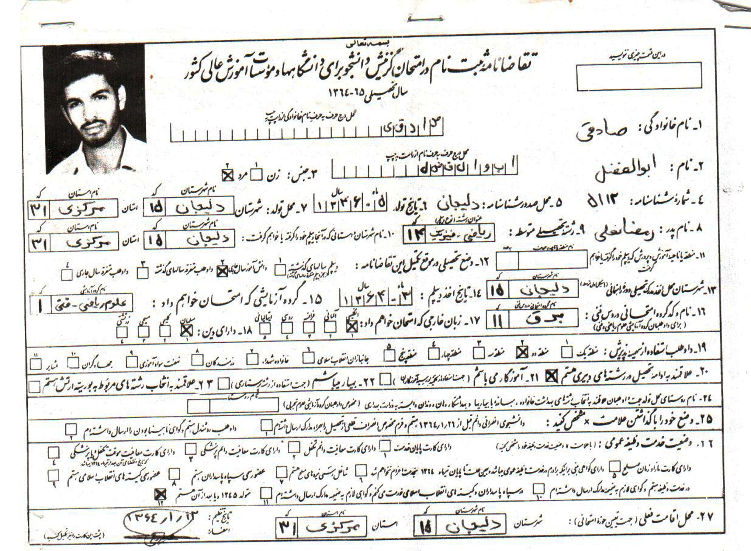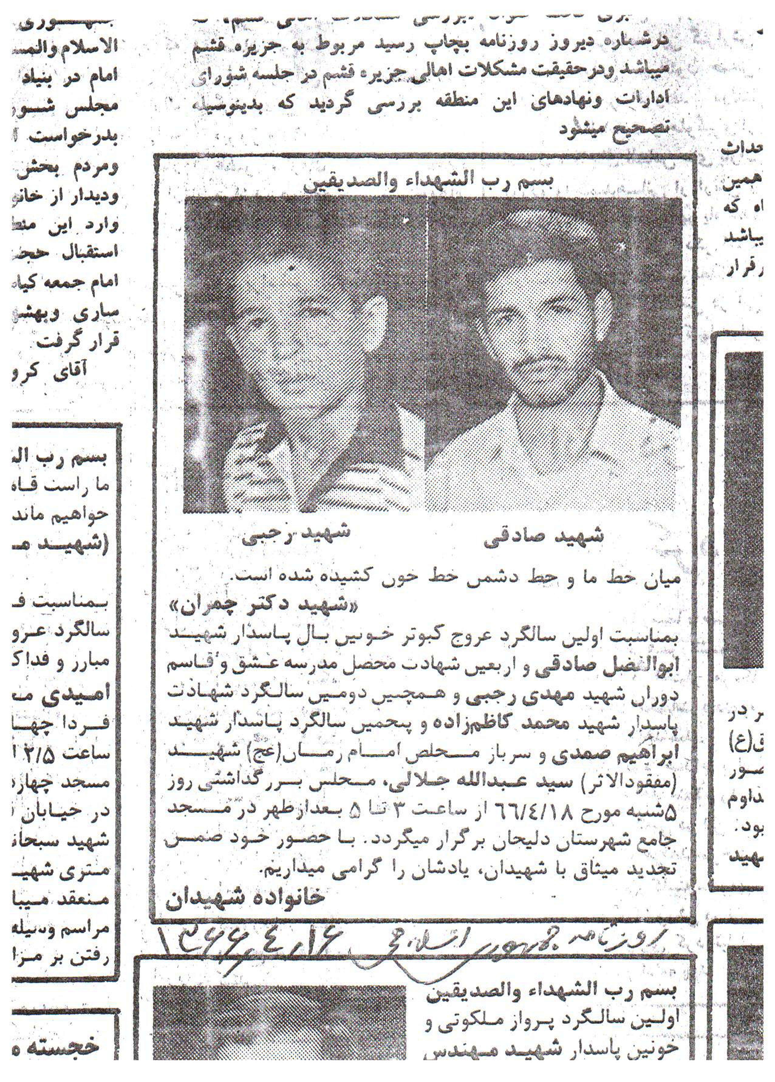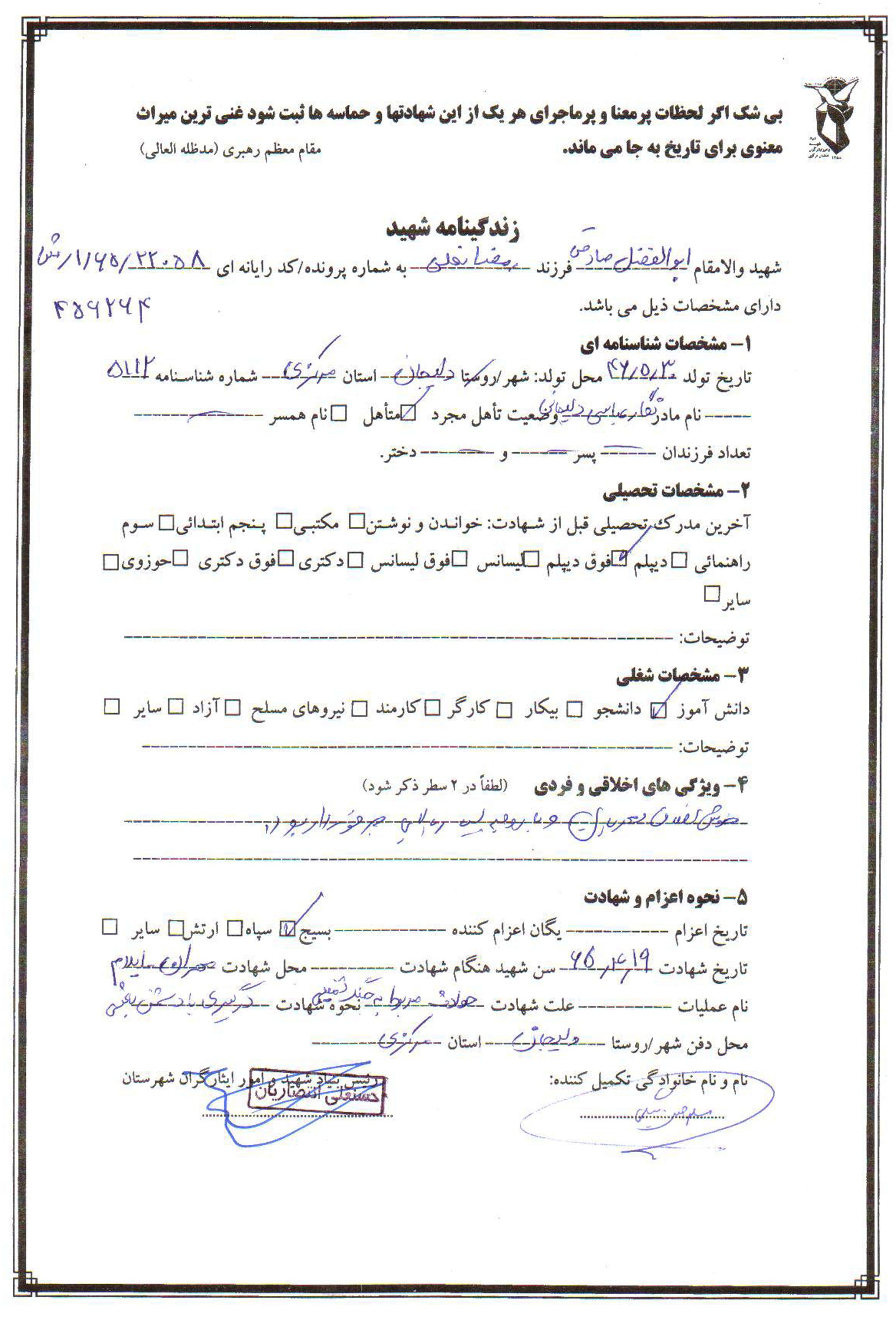 تاریخ تولد :1346 تاریخ شهادت : 65/4/19
