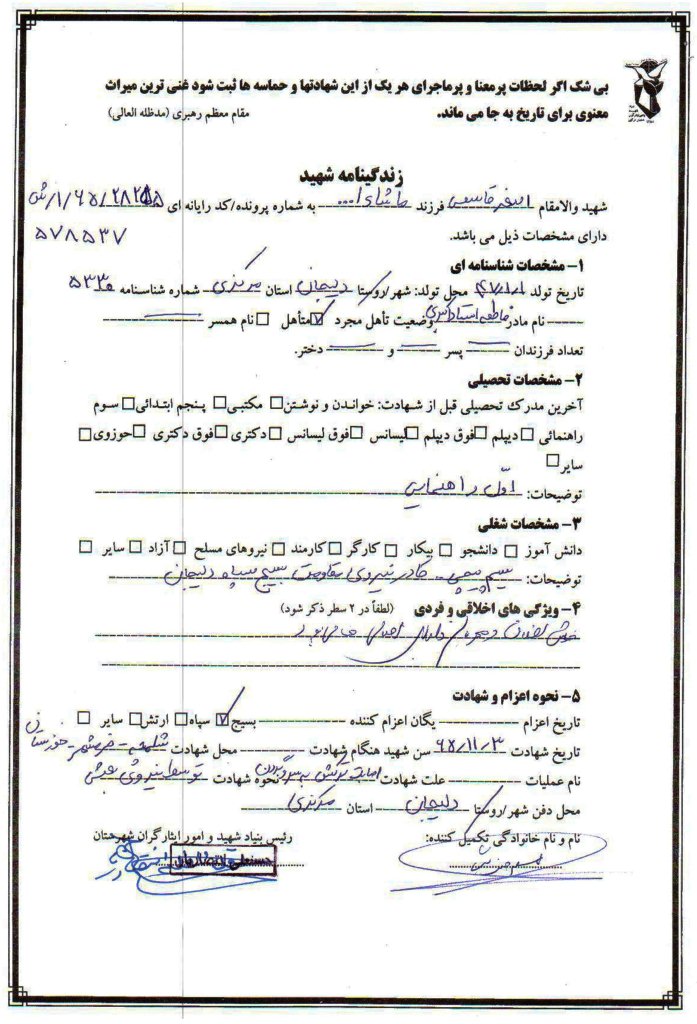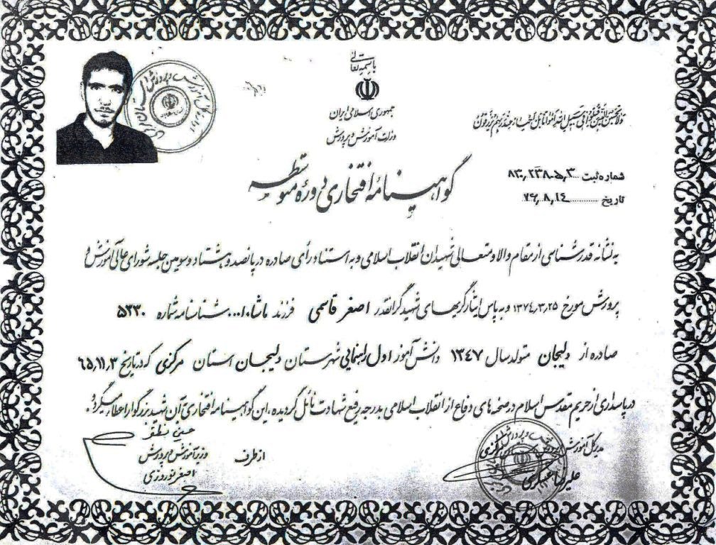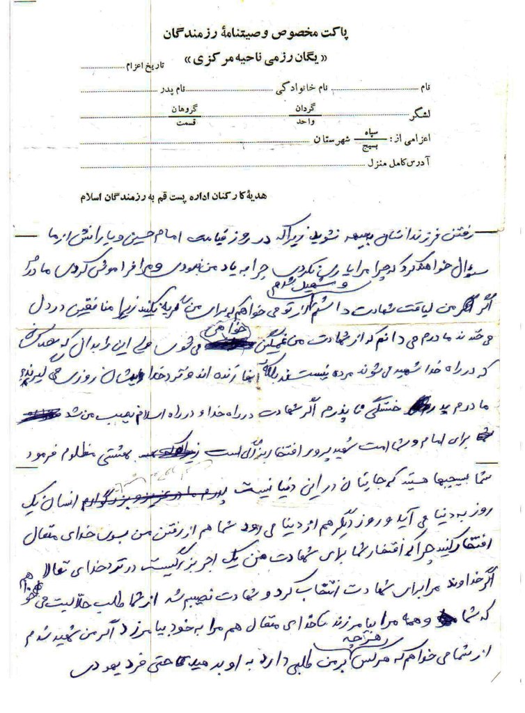 وصیتنامه شهید اصغر قاسمى فرزند ما شاء ا...