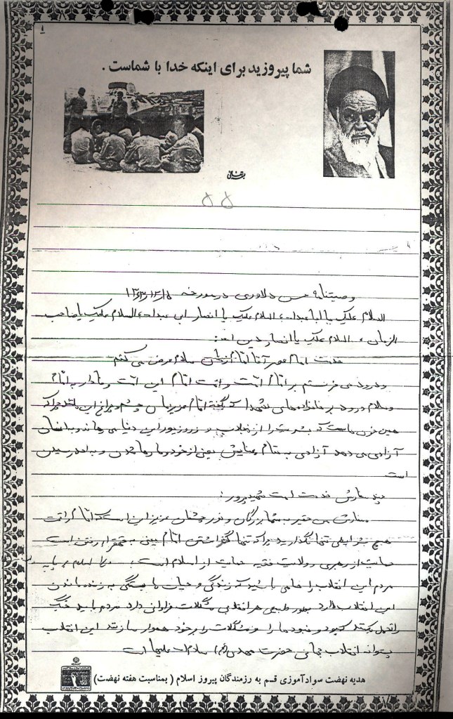 وصیتنامه شخصى حقیر از تبار رهروان راه حسین(ع) سرور شهیدان