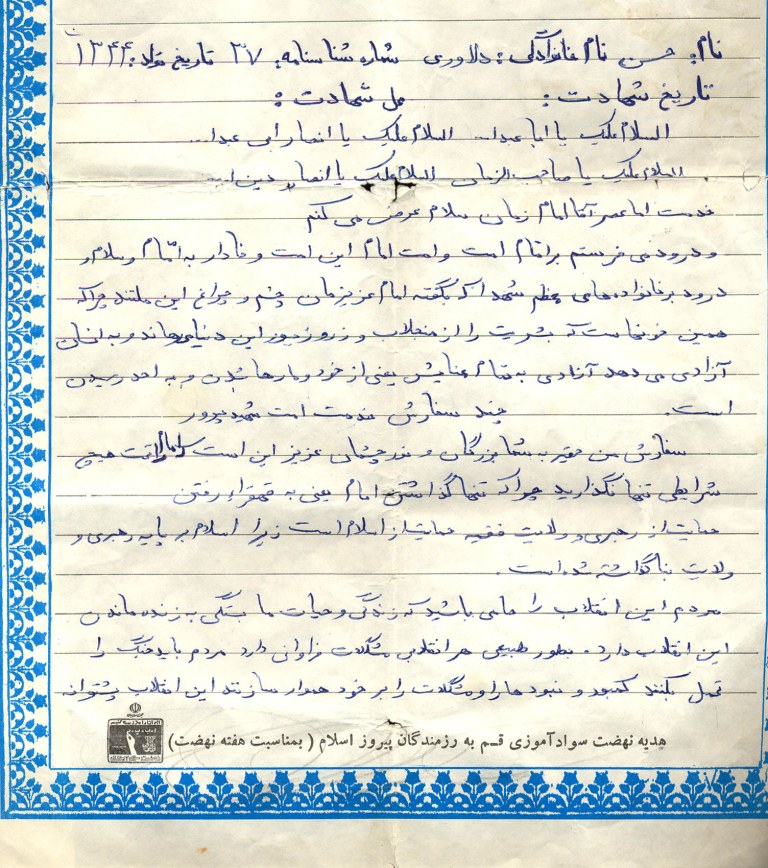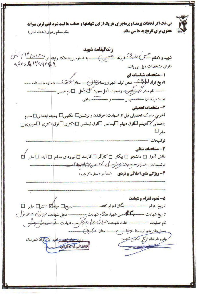 وصیتنامه حسن دلاوری در مورخه15/12/1363